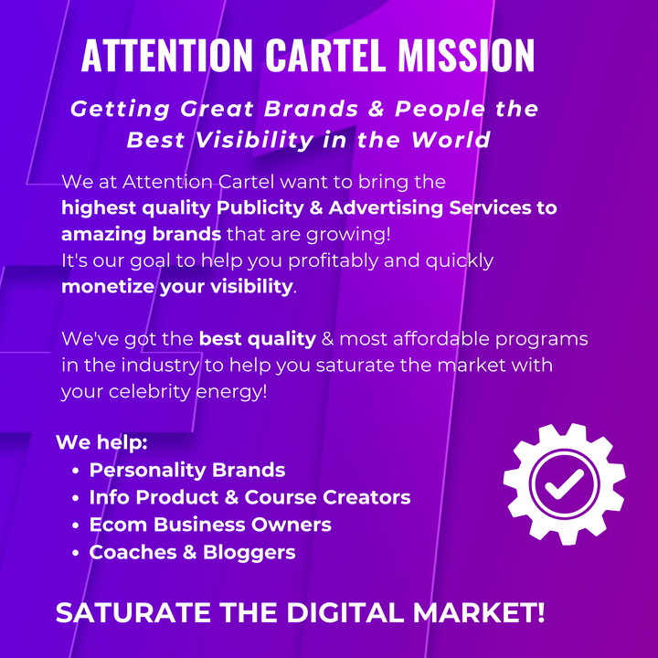 We at Attention Cartel want to bring the highest quality Publicity & Advertising Services to amazing brands that are growing!