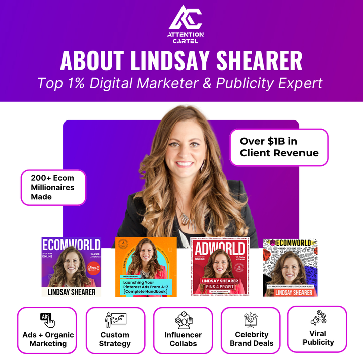Lindsay has helped her clients generate over $1B in revenue in the ecom, info product, personal brand & saas space with publicity, influencer collabs & digital marketing.
